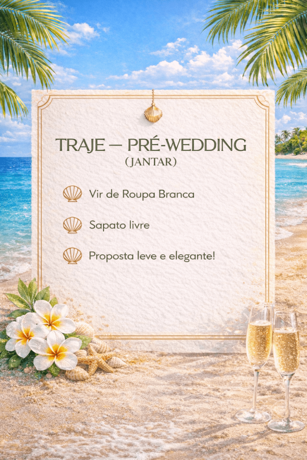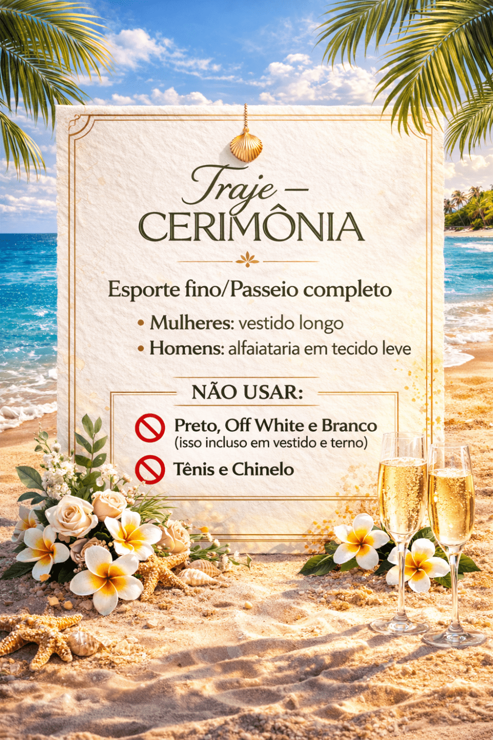 Aqui vocês encontrarão todas as informações importantes para aproveitar o final de semana com tranquilidade, como trajes e outros detalhes práticos.